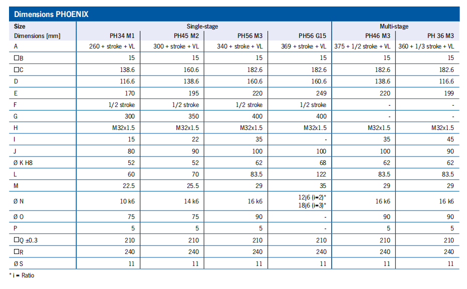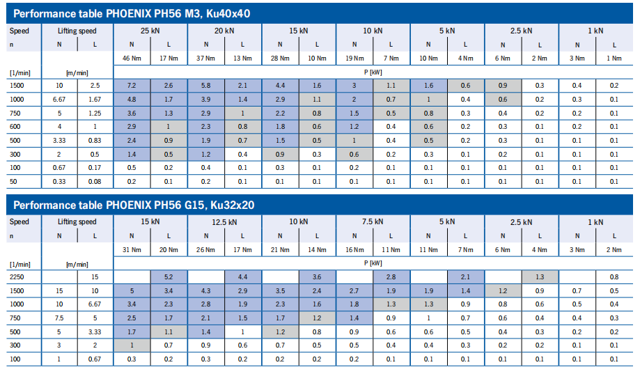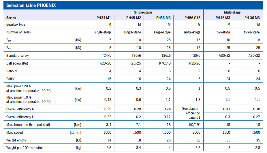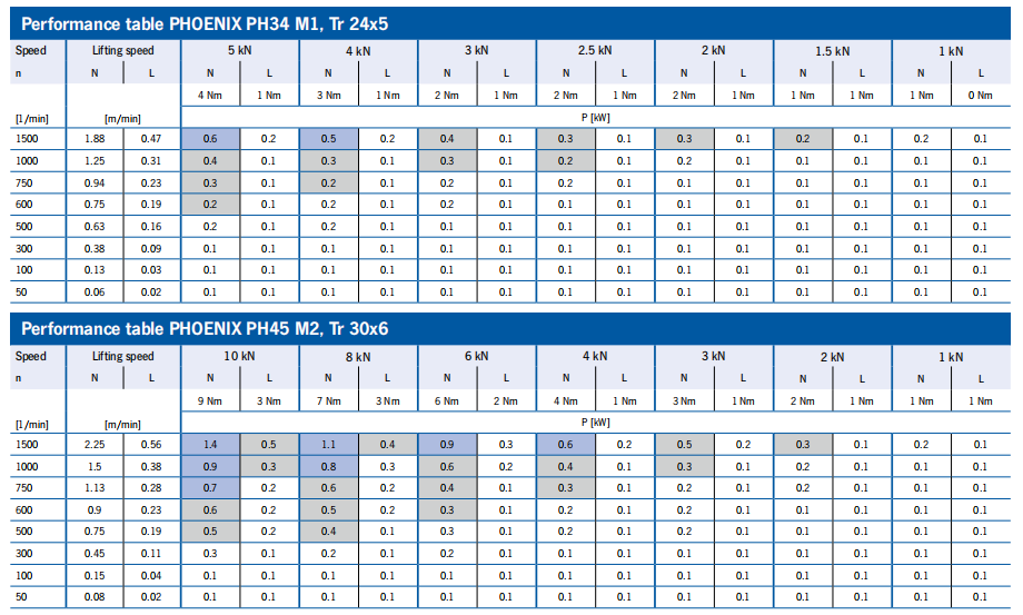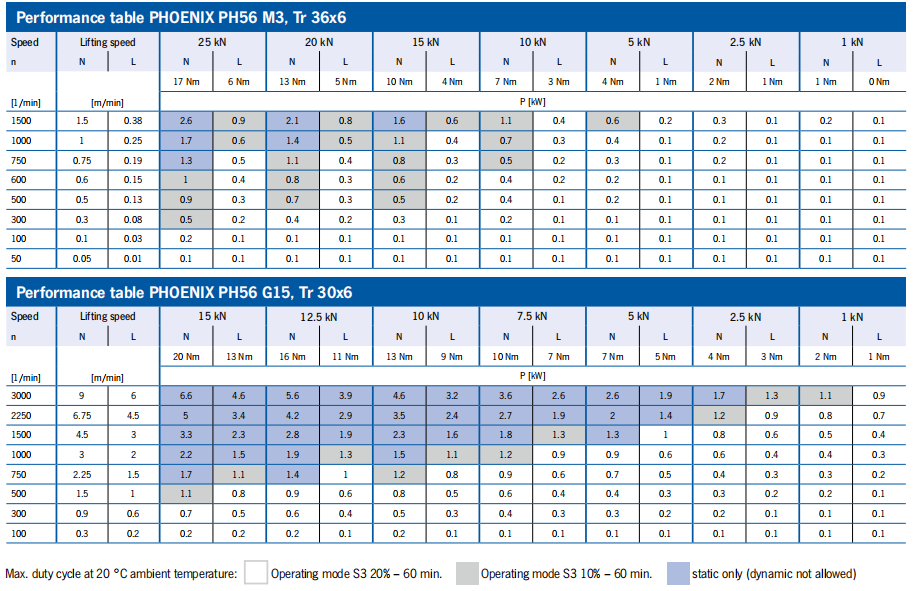 性能表 SINGLE-STAGE = 梯形螺釘