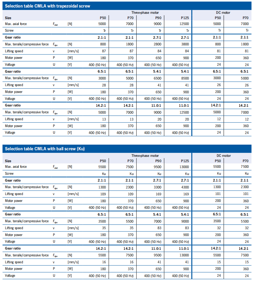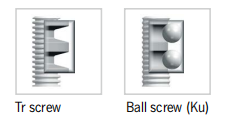 § Self-locking trapezoidal screw optional with ball screw (Ku)