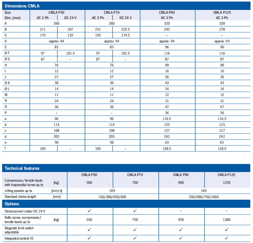 CMLA P50, P70, P90, P125 Dimensions