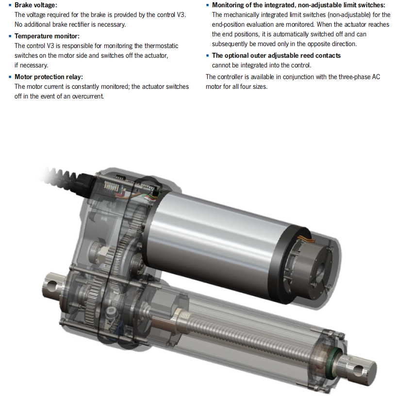 § Long lifetime  thanks to case-hardened gears and bronze driving nut.  No power-transmitting components made of plastic