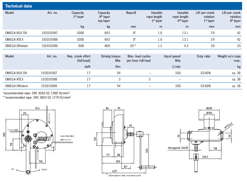 專為特殊挑戰(zhàn)而開發(fā):OMEGA 手動(dòng)鋼絲繩在 ATEX 等地區(qū),絞車機(jī)功能安全完美(防爆)或離岸保護(hù)。歐米茄BGV D8和歐米茄離岸版本已為手動(dòng)操作做好準(zhǔn)備并通過外部電機(jī)驅(qū)動(dòng)運(yùn)行。